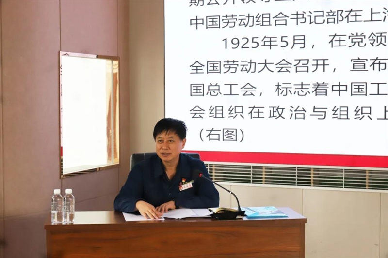 宣講中,趙春棠以《從黨領(lǐng)導(dǎo)中國(guó)工人運(yùn)動(dòng)的百年歷史中汲取奮進(jìn)力量》為題,從中國(guó)共產(chǎn)黨領(lǐng)導(dǎo)工人運(yùn)動(dòng)的百年歷程、中國(guó)共產(chǎn)黨領(lǐng)導(dǎo)工人運(yùn)動(dòng)的理論探索、百年中國(guó)工人運(yùn)動(dòng)的啟示體會(huì)三方面進(jìn)行了一場(chǎng)生動(dòng)的宣講。并與參會(huì)人員進(jìn)行了黨史知識(shí)互動(dòng)問(wèn)答,進(jìn)一步引導(dǎo)廣大黨員干部傳承紅色基因,厚植為民情懷,切實(shí)為職工辦好事、辦實(shí)事、解難題。