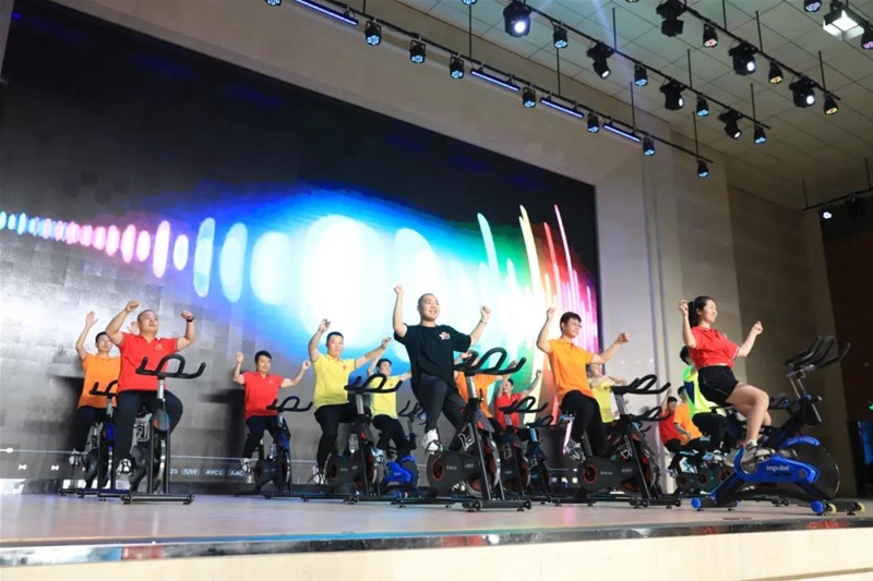 儀式上還表演了《動(dòng)感單車》和《啦啦操》。