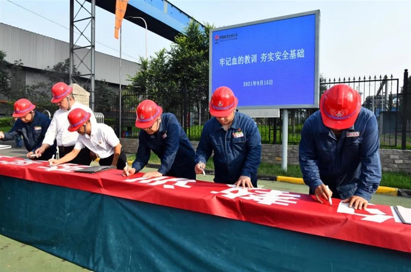 9月15日,公司第18個安全警示教育日活動在公司二十萬煤氣柜區(qū)域舉行。韓城市應(yīng)急管理局黨委委員焦穎濤,工礦商貿(mào)監(jiān)管科科長樊凱,公司黨委副書記、總經(jīng)理劉安民,黨委委員、副總經(jīng)理馮偉及各職能部門、生產(chǎn)單位、外協(xié)單位相關(guān)負(fù)責(zé)人參加。
