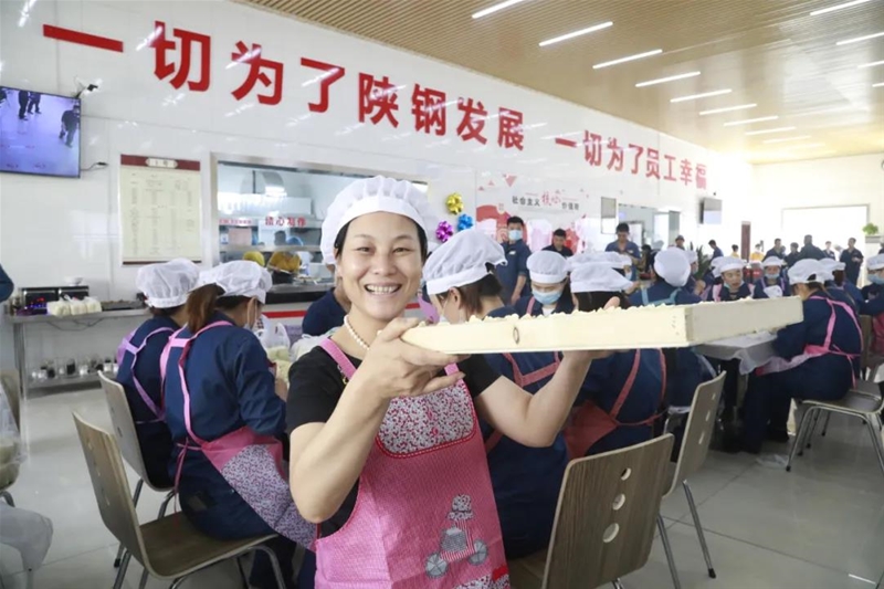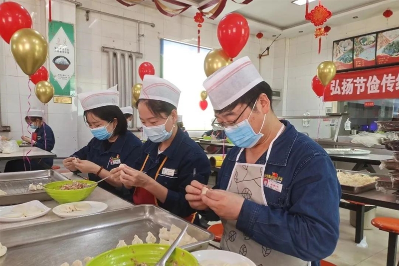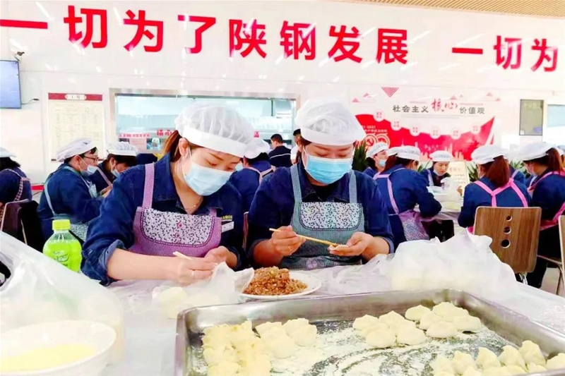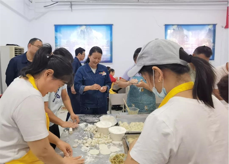 煉鐵廠、綜合服務(wù)公司工會(huì)聯(lián)合組織,發(fā)動(dòng)30余名精干的“娘子軍”,在煉鐵老區(qū)職工餐廳義務(wù)包餃子,職工在品嘗香噴噴的餃子宴之余,拉家常、慶團(tuán)圓,溫馨濃情的中秋氛圍讓職工切身感受到了企業(yè)大家庭的溫暖。