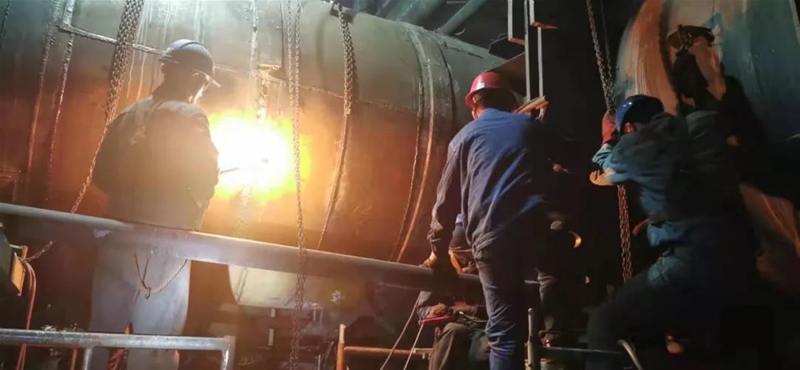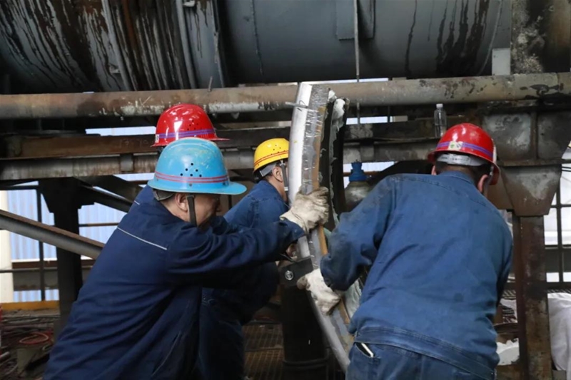“來(lái),再來(lái)兩個(gè)人,抬一下膨脹節(jié)……”有人艱難地拉動(dòng)備件,有人趕來(lái)幫忙,嘴里還喊著人員支援。話(huà)音未落,不遠(yuǎn)處外協(xié)工隊(duì)的工人們都跑了過(guò)來(lái),齊心協(xié)力把膨脹節(jié)搬抬至指定位置。“小劉,廢舊的保溫磚一定要清理干凈!”“王師,管道焊接一定要高質(zhì)量!”“收到,一定保障新保溫磚鋪好……”