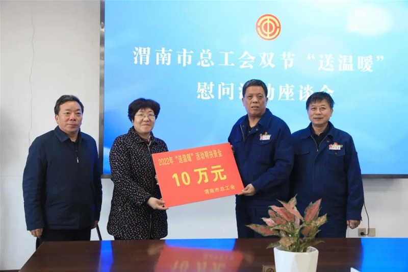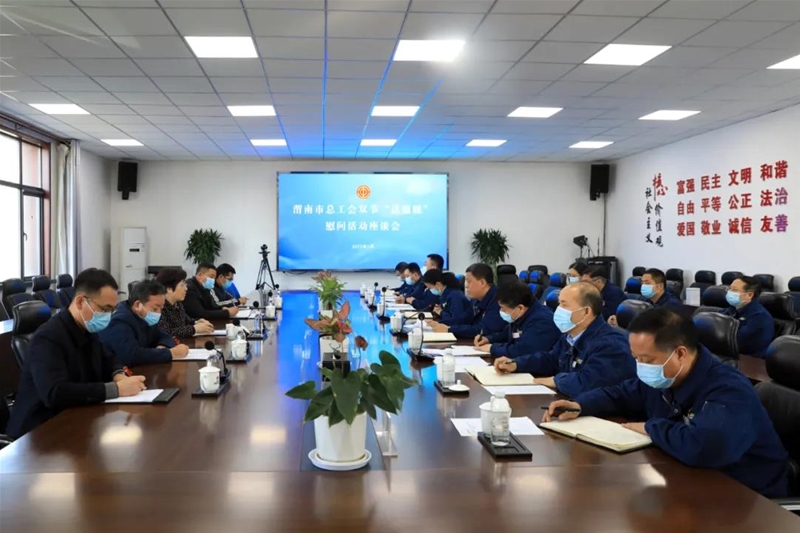 1月18日,渭南市總工會(huì)黨組書(shū)記、常務(wù)副主席侯雪靜,韓城市總工會(huì)常務(wù)副主席李養(yǎng)義一行來(lái)公司“送溫暖”,并召開(kāi)座談會(huì)。公司黨委副書(shū)記、總經(jīng)理李都宏,黨委委員、工會(huì)主席趙春棠,各基層工會(huì)主席、相關(guān)部門(mén)負(fù)責(zé)同志參會(huì)。