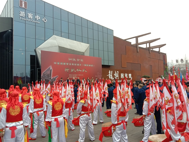 3月10日16:10,拍攝組在陜鋼集團(tuán)龍鋼公司參加中宣部紀(jì)錄片《鋼鐵脊梁》開機(jī)儀式。