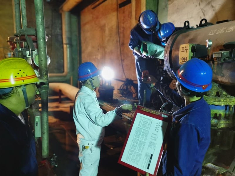 “今天的檢修只有兩個小時,大家的任務(wù)已經(jīng)明確,停機(jī)后迅速行動,必須在規(guī)定時間內(nèi)高質(zhì)量完成檢修工作。”即將停機(jī),連二作業(yè)長王小慶強(qiáng)調(diào)道。
