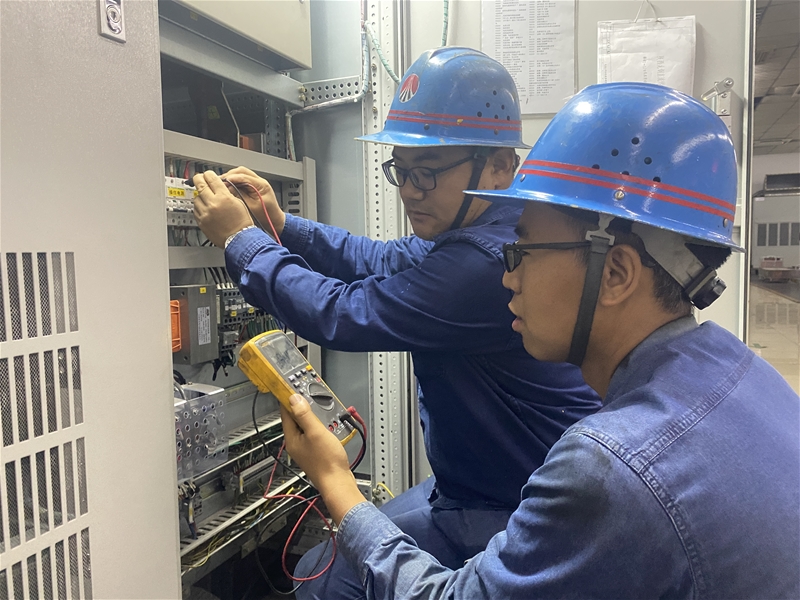 棒材一線加熱爐液壓站共有5臺(tái)主電機(jī),其控制電源無(wú)法切斷且無(wú)畫(huà)面運(yùn)行顯示,導(dǎo)致控制電源一直帶電存在安全隱患,主電機(jī)運(yùn)行切換時(shí)崗位工需現(xiàn)場(chǎng)確認(rèn)。針對(duì)以上問(wèn)題,該作業(yè)區(qū)技術(shù)人員對(duì)每臺(tái)電機(jī)的控制電源安裝相應(yīng)的電源開(kāi)關(guān),并編寫(xiě)電機(jī)運(yùn)行程序。改造后,若檢修某臺(tái)電機(jī)時(shí),可同時(shí)斷開(kāi)相應(yīng)的主回路和控制回路電源,崗位工可通過(guò)監(jiān)控畫(huà)面掌握每臺(tái)電機(jī)運(yùn)行情況,極大地降低了人員勞動(dòng)強(qiáng)度,確保了作業(yè)人員安全。