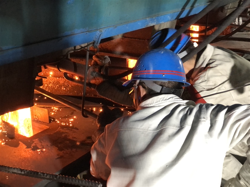 圖七:煉鋼廠電儀作業(yè)區(qū)連鑄電工程濤,正對煤氣區(qū)域聯(lián)鎖設(shè)備進(jìn)行測試。40℃高溫籠罩下的連鑄平臺,揮汗如雨,盡管如此,依然要確保設(shè)備的每一次精檢。