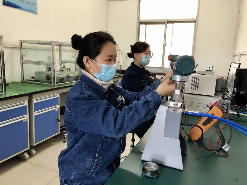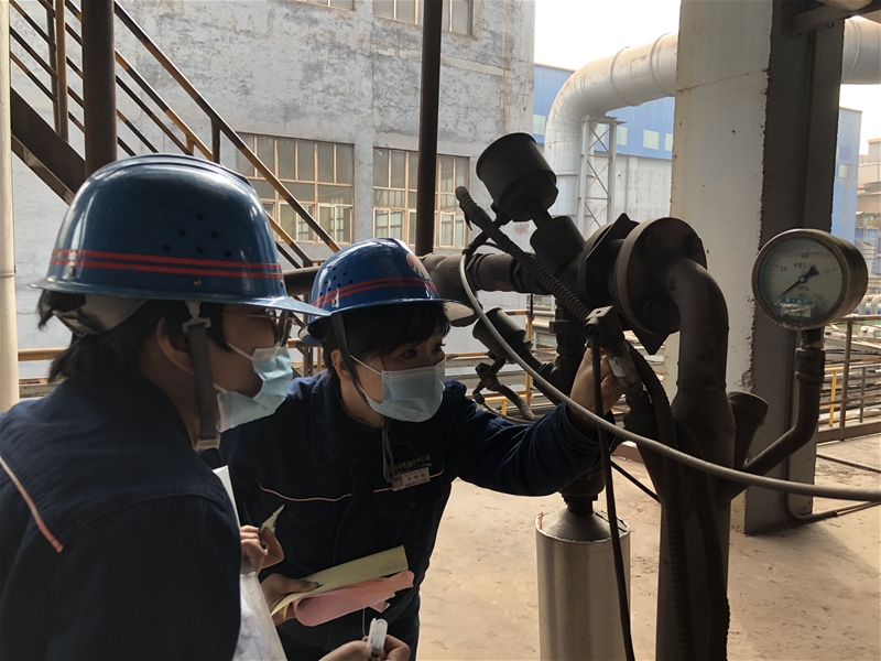 為確保生產(chǎn)正常運(yùn)行,她們置身生產(chǎn)一線,利用便攜式檢測(cè)設(shè)備,對(duì)壓力、溫度、流量、電磁等測(cè)量儀器進(jìn)行在線檢測(cè)。壓力設(shè)備采取相同壓力源多點(diǎn)位進(jìn)行比對(duì),計(jì)算誤差值是否在允許范圍內(nèi);溫度類設(shè)備先使用紅外測(cè)溫儀進(jìn)行測(cè)試,再根據(jù)主控室顯示的數(shù)據(jù)進(jìn)行比對(duì),判定其是否合格;電能表則通過標(biāo)準(zhǔn)表與被檢表相連接,通過變比值計(jì)算出電流值,根據(jù)現(xiàn)場(chǎng)電壓值與標(biāo)準(zhǔn)器示值進(jìn)行比對(duì);在線流量積算儀通過與多功能信號(hào)儀連接,在線檢測(cè)輸出信號(hào)值是否在允許范圍內(nèi)……她們瘦小的身影穿梭在縱橫交錯(cuò)的設(shè)備與管道間,為一臺(tái)臺(tái)測(cè)量設(shè)備檢測(cè)、分析,與現(xiàn)場(chǎng)工作人員進(jìn)行溝通,確認(rèn)每一臺(tái)設(shè)備性能正常。