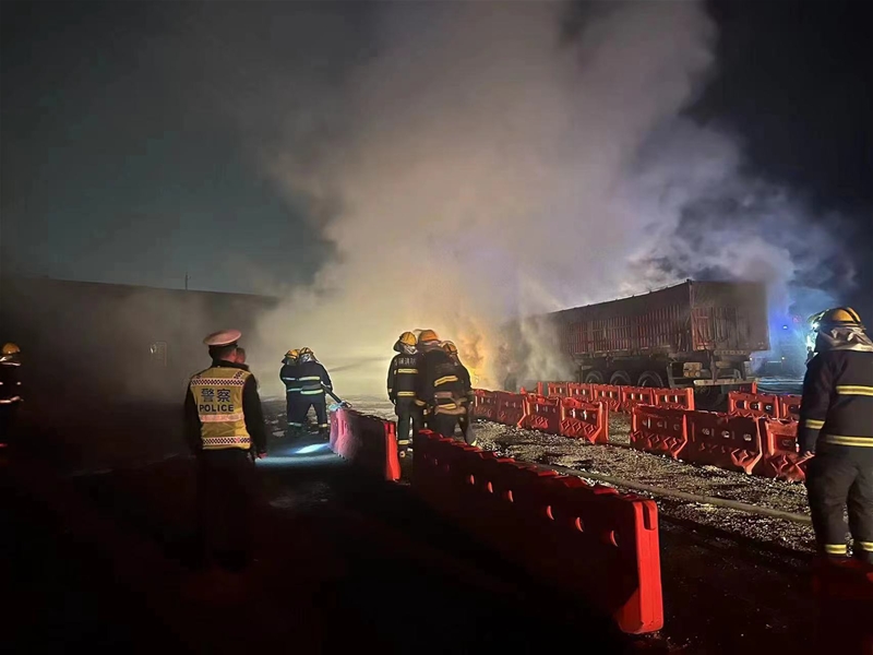 火情就是命令。公司安保大隊(duì)消防中隊(duì)立即啟動(dòng)《社會(huì)外援緊急救援方案》,值班干部帶隊(duì),組織4名消防隊(duì)員、4名交管隊(duì)員及消防車(chē)輛1輛于晚7:40趕到火災(zāi)現(xiàn)場(chǎng),在接受現(xiàn)場(chǎng)韓城市消防救援大隊(duì)指揮任務(wù)后,消防員拿起滅火工具,冒著高溫和刺鼻的氣味撲向火源,展開(kāi)滅火行動(dòng)。由于夜間光線不足,再加上大卡車(chē)車(chē)頭整個(gè)起火,火勢(shì)兇猛、濃煙滾滾,為保證安全,同時(shí)安排4名交管隊(duì)員現(xiàn)場(chǎng)實(shí)行警戒,疏導(dǎo)車(chē)輛交通。最后在韓城市消防救援大隊(duì)、龍鋼公司安保大隊(duì)消防隊(duì)、龍門(mén)煤化工消防隊(duì)三方同心合力下,半小時(shí)后火災(zāi)被成功撲滅。