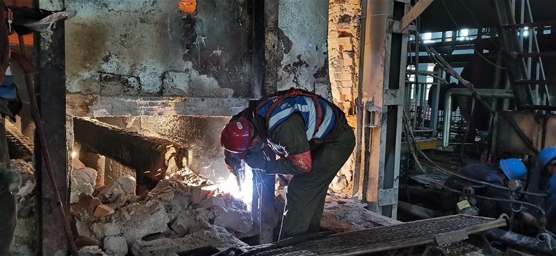 安全、防疫,雙管齊下。每個施工點除了施工人員,總站著一位戴黃帽子的安全監(jiān)管人員,密切注視著四周環(huán)境。這是每個施工作業(yè)點的標配。“怎么重視安全都不為過。”公司總經(jīng)理多次在公司晨會上強調(diào)。在此次檢修中,公司按照“安全三管三必須”要求,由安全管理部門牽頭,各業(yè)務(wù)部門、分廠配合,對施工現(xiàn)場進行監(jiān)管,形成安全管理合力,確保檢修安全進行。同時針對年終大修外來人員多、雜的特點,公司將防疫工作上升至安全管理級別,從施工人員進入韓城區(qū)域開始,安排專人對接,執(zhí)行隔離政策,進入廠區(qū)后,設(shè)立多層次信息登記點,層層把關(guān),做好疫情防控工作。