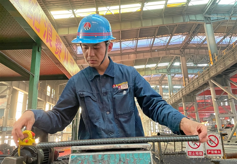 在軋鋼廠棒三生產(chǎn)線上,軋機(jī)轟鳴,鋼材飛馳……工人在各自的崗位上一絲不茍地工作。軋機(jī)一旁,軋鋼工長王陽輝正拿著卡尺細(xì)致地對紅鋼進(jìn)行取樣,確保每支鋼材的直徑都在誤差范圍內(nèi)……