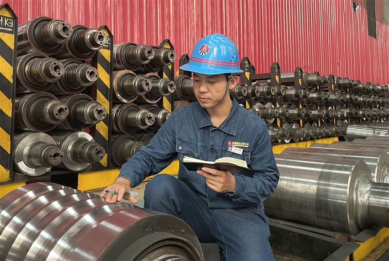 面對理論知識和業(yè)務(wù)技能的不足,他沒有氣餒,給自己定下目標(biāo),從最基礎(chǔ)的軋制原理跟工藝流程學(xué)起。為打牢理論基礎(chǔ),他利用工作間隙自學(xué)業(yè)務(wù)書籍,抓住每一次換輥機(jī)會,比對總結(jié)設(shè)備狀態(tài),跟班向老師傅們學(xué)習(xí)備輥、調(diào)整輥縫及軋輥位置的“獨(dú)門絕技”,手套磨破了一副又一副,扳手轉(zhuǎn)動了一次又一次,終于練就了“眼、心、手”合一的軋制技能,并根據(jù)生產(chǎn)實際,歸納整理出一套溫度控制、軋制速度、軋機(jī)負(fù)荷等重要參數(shù)的“錦囊冊”。他在勤學(xué)苦練中成就了自我。
