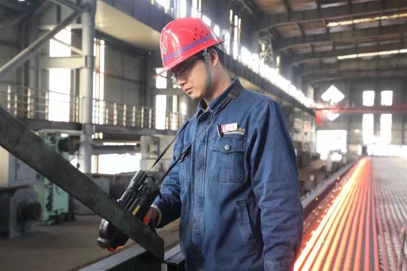 面對φ40規(guī)格HRB400E螺紋鋼試軋成功的喜悅,他這樣說,“試軋成功是軋鋼人凝心聚力共同取得的成績,只要瞄準(zhǔn)目標(biāo),實干篤行,就能推動工藝技術(shù)取得新突破。”