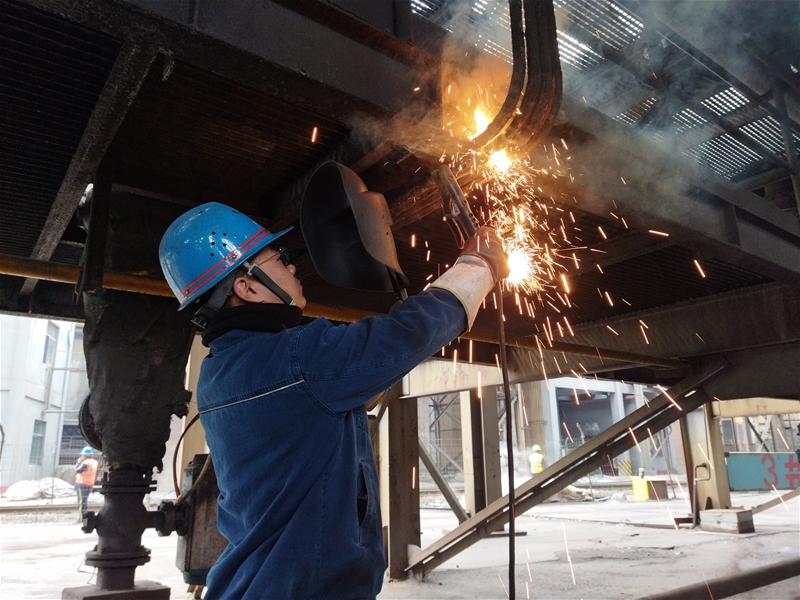 現場焊花飛濺,從拆除廢舊鋼管到焊接新的橋架,3#爐電焊工何澳華作業(yè)細致認真,每天6小時不間斷地進行焊接作業(yè),始終專注如一。