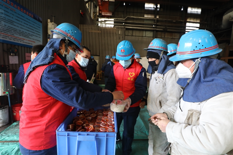 “大冷天的,吃點(diǎn)餃子暖暖身!”“慢點(diǎn)吃,小心燙!”一句句貼心的祝福,一份份鮮美的餃子,像是冬日的一縷陽(yáng)光,溫暖著職工的心。