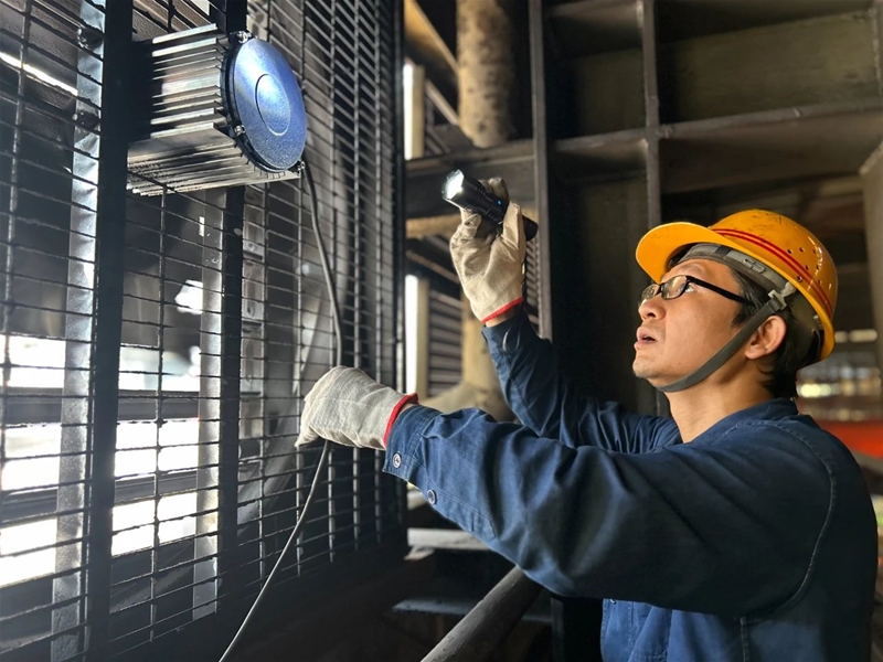 該裝置通過(guò)產(chǎn)生負(fù)壓效應(yīng),可以排出生產(chǎn)過(guò)程中產(chǎn)生的熱空氣,并帶入新鮮空氣,降低室內(nèi)溫度,實(shí)現(xiàn)通風(fēng)換氣的目的,保證室內(nèi)空氣質(zhì)量,創(chuàng)造出適宜的工作環(huán)境。自該裝置投入后,該工序組織專(zhuān)人每天對(duì)現(xiàn)場(chǎng)溫度進(jìn)行測(cè)量,查看運(yùn)行效果,經(jīng)過(guò)連日數(shù)據(jù)對(duì)比,發(fā)現(xiàn)溫度較投入前降低10度左右,有效保護(hù)了職工身心健康,保障了人員作業(yè)安全。“沒(méi)安裝負(fù)壓風(fēng)機(jī)之前進(jìn)行設(shè)備點(diǎn)檢,一上行車(chē)就感覺(jué)一股熱浪撲來(lái),現(xiàn)在明顯感覺(jué)沒(méi)有之前那么熱了,這樣點(diǎn)檢起來(lái),大家更仔細(xì)了……”一名天車(chē)工說(shuō)道。
