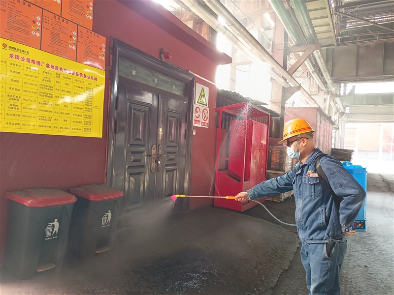 1月11日晚上11點(diǎn),安全員肖鵬飛正在給陸續(xù)到崗的職工測量體溫,檢查口罩佩戴情況,并詳細(xì)詢問每個職工生活軌跡,然后一項(xiàng)項(xiàng)認(rèn)真填寫到檢測表上,一項(xiàng)項(xiàng)工作緊張而有序。等交接班的職工全部檢查完畢,一切正常,肖鵬飛長舒了一口氣,緊接著他背起幾十斤重的消毒桶,開始對區(qū)域進(jìn)行消毒,主控室、推鋼室、連鑄平臺,他來回穿梭在煉鋼廠,按時按點(diǎn)給各操作室消毒。他利用班前班后會組織職工學(xué)習(xí)《新型冠狀病毒感染的肺炎防控知識手冊》,督促引導(dǎo)職工在廠區(qū)內(nèi)、崗位上、出入餐廳、乘坐通勤車時均能持續(xù)并正確佩戴口罩。他還不定期檢查各班組的消毒記錄、口罩銷毀記錄及“一人一檔”信息卡的更新情況,準(zhǔn)確掌握職工身體情況,從嚴(yán)從實(shí)抓好疫情防控工作。