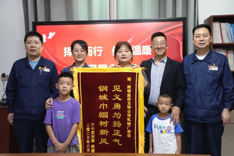 “兒子說,讓我一定要找到阿姨,是這個(gè)阿姨救了我們一家,我們要給阿姨送一面錦旗。”8月30日,韓城一家面館老板攜全家為軋鋼廠職工李玫送來一面錦旗,錦旗上“見義勇為揚(yáng)正氣鋼城巾幗樹新風(fēng)”十四個(gè)大字格外醒目。