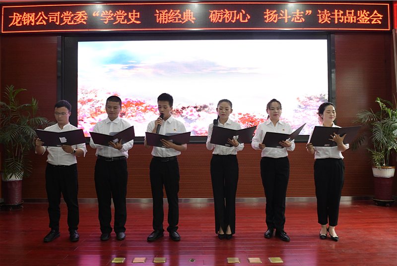 此次讀書品鑒會以“學(xué)黨史 誦經(jīng)典 礪初心 揚斗志”為主題,創(chuàng)新黨史學(xué)習(xí)方式,以中國共產(chǎn)黨百年奮斗歷程為軸線,分為開天辟地(《紅船,從南湖起航》)、艱苦奮斗(《沁園春·雪》《七律·長征》)、崢嶸歲月(《回延安》《黨旗頌》)、百年風(fēng)華(《黨啊,我的母親》《盛世中國》《永遠跟黨走》)四個篇章,以誦讀詩詞經(jīng)典的形式,全過程、全景式、史詩般展現(xiàn)了中國共產(chǎn)黨波瀾壯闊的百年歷程,環(huán)環(huán)相扣、由遠及近,層層深入,為全員奉上了一次形象生動的黨史學(xué)習(xí)大餐,將豐富的黨史知識轉(zhuǎn)化為助推龍鋼高質(zhì)量發(fā)展的磅礴力量。