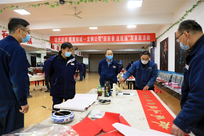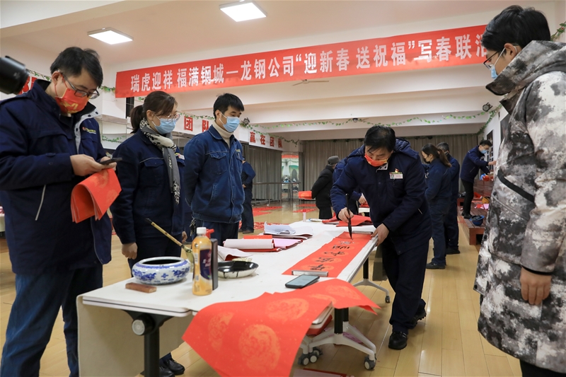 丑去寅來(lái)千里錦,牛奔虎嘯九州春。為弘揚(yáng)中華傳統(tǒng)文化,營(yíng)造喜慶祥和的節(jié)日氛圍,1月18日-20日,由公司工會(huì)主辦、書(shū)畫(huà)協(xié)會(huì)承辦的“瑞虎迎祥 福滿鋼城”——龍鋼公司“迎新春、送祝福”寫(xiě)春聯(lián)活動(dòng)在職工活動(dòng)中心圓滿完成。
