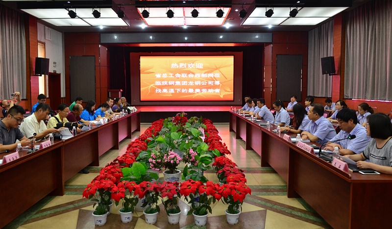 “尋找高溫下的最美勞動者”采風組一行首先在公司三樓會議室召開了座談會,陜鋼集團女工委主任、工會辦副主任蘭茹、公司工會主席趙春棠分別就陜鋼集團和龍鋼公司的企業(yè)概況、生產(chǎn)組織、工會工作基本情況作了簡要介紹。西部網(wǎng)記者就相關(guān)問題與參會職工代表進行了交流。