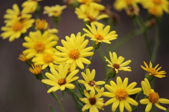 我最喜歡這個(gè)時(shí)候的故鄉(xiāng),在秋高氣爽的日子里沐浴著溫暖的陽光,漫步在田間的小路上,欣賞山菊花那濃濃的黃,感受那一縷縷淡淡的幽香,卸掉一切工作生活的疲憊,悠哉悠哉……我喜歡跋涉在那陌生又熟悉的溝壑山梁間,欣賞山野里那盛開的山菊花,看它們不畏貧瘠,在高高的土崖邊、深深的石縫里頑強(qiáng)的綻放著。你看那一根根嬌嫩的枝桿上托著一朵朵小黃花,有仰著小腦袋向你微笑的、有歪著頭顱想著心事的、還有低著頭正在打著嗑睡的……一陣山風(fēng)吹拂而過,搖曳在秋風(fēng)里的山菊花,散發(fā)出沁人心脾的菊香,此時(shí)的我就像一位世外高人醉臥山間獨(dú)享人間美景??稍谶@仙境中我心中卻有一種淡淡的憂傷襲來。因?yàn)槲业哪X海中就會(huì)浮現(xiàn)出一個(gè)頭上插滿了山菊花,手上抱著大把的山菊花,癡情于山菊花的瘋女人。她是我自家的一位嫂子。