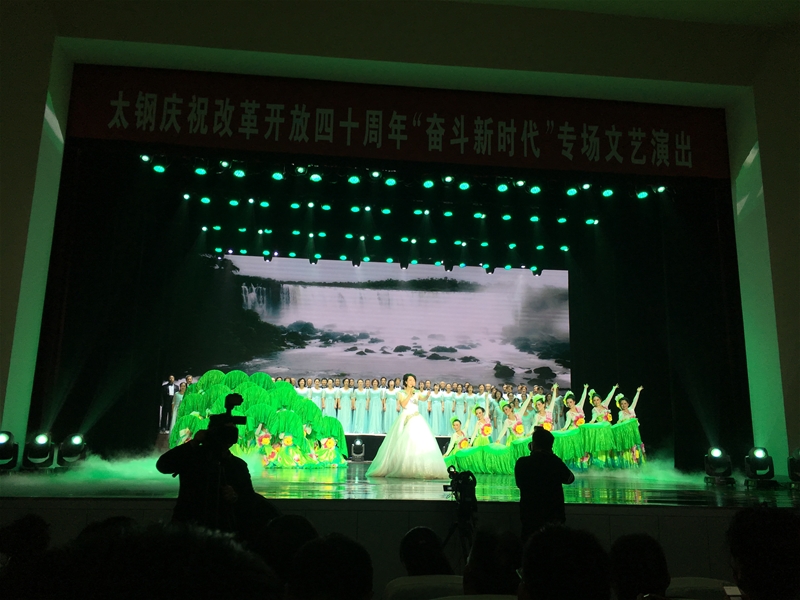 如果說(shuō)參觀活動(dòng)是開胃菜,其后的太鋼慶祝改革開放四十周年奮斗新時(shí)代專場(chǎng)文藝演出,則更讓代表們感受到太鋼職工深厚壯美的精神底蘊(yùn)。開場(chǎng)節(jié)目《黃河鼓韻》把觀眾帶入到大浪滔滔、奔騰呼嘯的黃河壺口,黃土高原的古謠,把人們的神思帶到了磅礴廣闊的黃河呂梁。鼓槌輕擊,似安靜水流;鼓槌揚(yáng)起,似萬(wàn)滔奔鳴。傳統(tǒng)鼓樂(lè)竟如歌如訴,編排之美妙使人心曠神怡。太鋼職工表演的群口快板節(jié)目,把太鋼四十年發(fā)展變化巧妙穿插在丈母娘與四個(gè)女婿的笑語(yǔ)對(duì)話中,又見匠心之妙。所有的節(jié)目編排精美,大氣沉美,充分展示了太鋼職工高品位的文藝素養(yǎng),文明禮儀的深厚積淀,折射出太鋼職工對(duì)于生活的熱愛,對(duì)于真善美的藝術(shù)追求,以及太鋼職工雙手創(chuàng)造的幸福文化生活。詢問(wèn)得知,太鋼文藝協(xié)會(huì)有作協(xié)、美協(xié)、書法、攝影、舞蹈、體育等八個(gè)分會(huì)之多,文藝人才門類齊全,文藝活動(dòng)豐富多彩。
