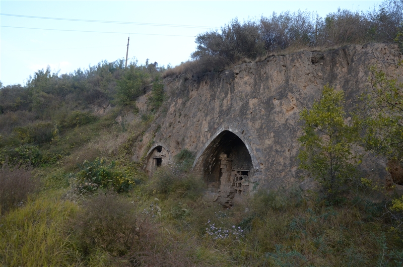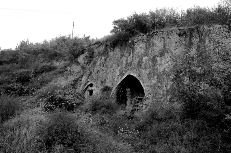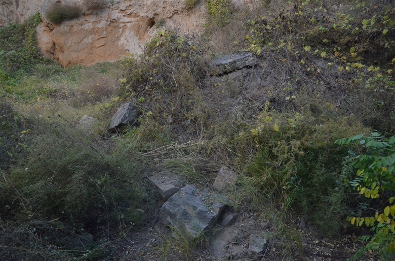 幸遇熱心村民協(xié)助,于荒草野樹中搜尋,辨識到當(dāng)年職工所住窯洞三孔,及爐基、冷卻水管,蓄水池、食堂等遺跡。