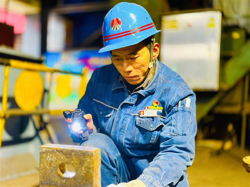 在火熱的連鑄生產現(xiàn)場,班長陳超所在的維修班嚴格執(zhí)行高溫天氣點巡檢制度,確保設備維護到位,聯(lián)鎖保護到位。悶熱炙烤的廠房里已是一片火熱,他們穿梭于臺上臺下,身上的藍色工服早已浸滿汗水。