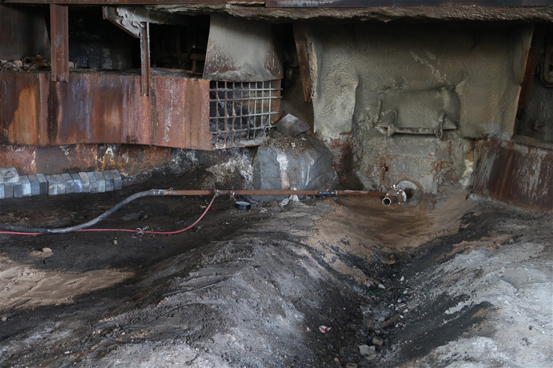 項(xiàng)目簡(jiǎn)介:402#皮帶機(jī)尾區(qū)域是崗位工日常作業(yè)必須的位置,長(zhǎng)期以來(lái)因水渣帶水在皮帶運(yùn)行過(guò)程中大量溢流至機(jī)尾及,渣水堆積后亂流?,F(xiàn)場(chǎng)研究,在機(jī)尾滾筒處制作1400*800mm敞口形水槽,中間加設(shè)渣水分離板,將皮帶在運(yùn)行過(guò)程中的渣水全部回收至水槽中,由渣水分離板分離后,水用膠皮管引入渣處理回收池中。改造后區(qū)域積水得到了徹底解決,減少了作業(yè)人員的安全隱患及現(xiàn)場(chǎng)衛(wèi)生環(huán)境得到治理,又回收了積水二次利用,對(duì)安全生產(chǎn)工作有了很大改善。