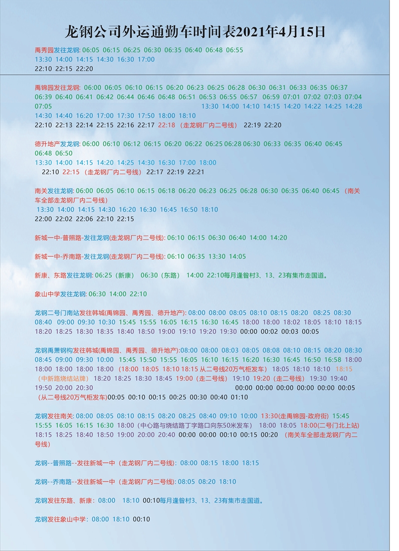 龍鋼公司外運通勤車時間表2021年4月15日