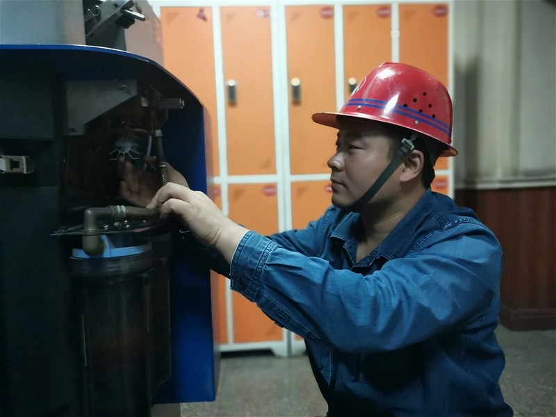 晚上8:00,操作間依然機器轟鳴,現(xiàn)場一片忙碌景象。班長楊博頂著四十多度的高溫,認(rèn)真仔細(xì)排查設(shè)備隱患。在大家心目中,他是一位資深的光譜維修“醫(yī)生”。憑著自己的專業(yè)能力,他能夠及時判斷出設(shè)備問題的癥結(jié)。這不,他正針對光譜儀排氣不暢、氬氣排氣管路堵塞、火花室下部的彎頭內(nèi)有異物的故障,巧妙采用更換排氣管和透明塑料管的方法,并定期對排氣管路進(jìn)行吹掃,取得了良好效果。